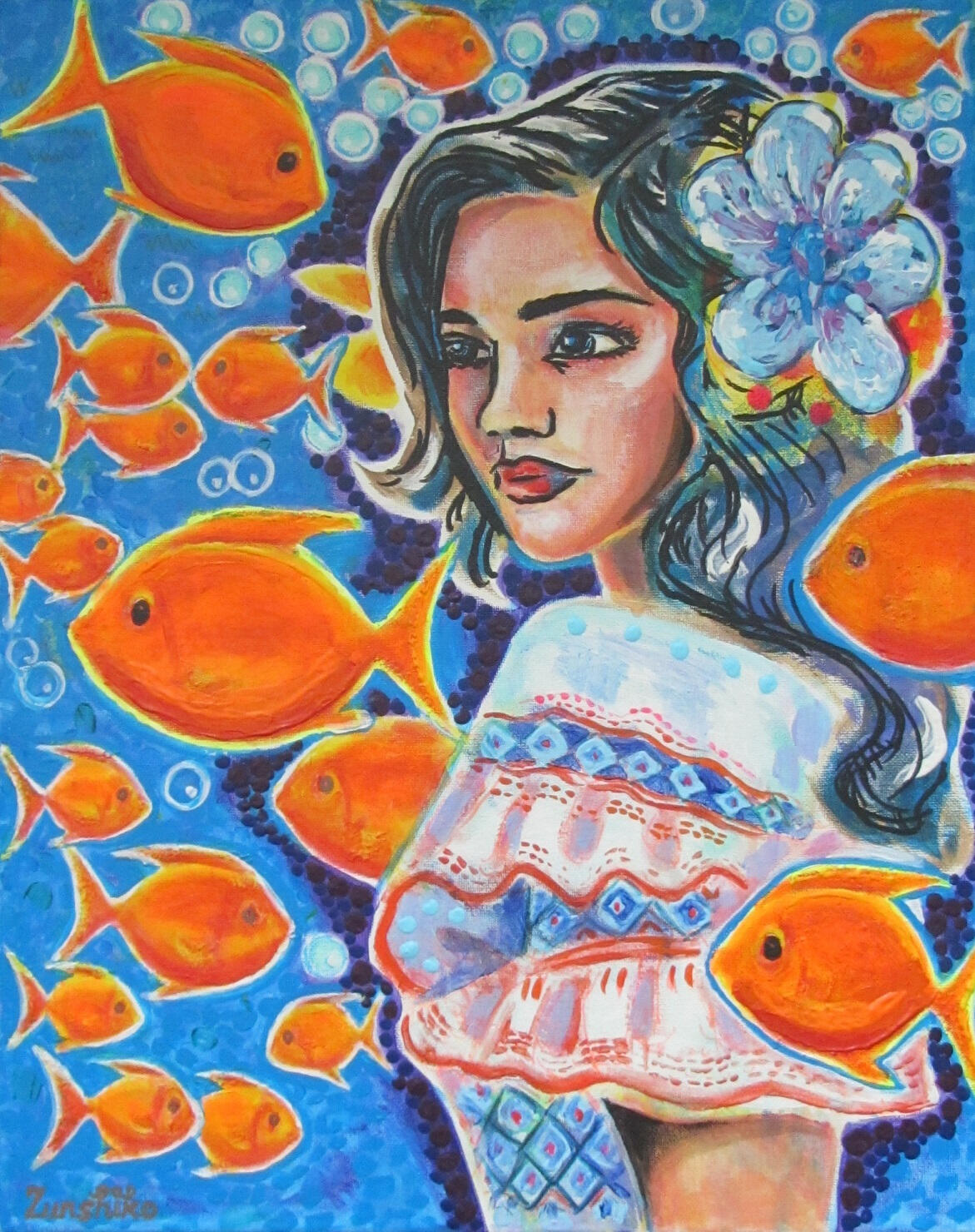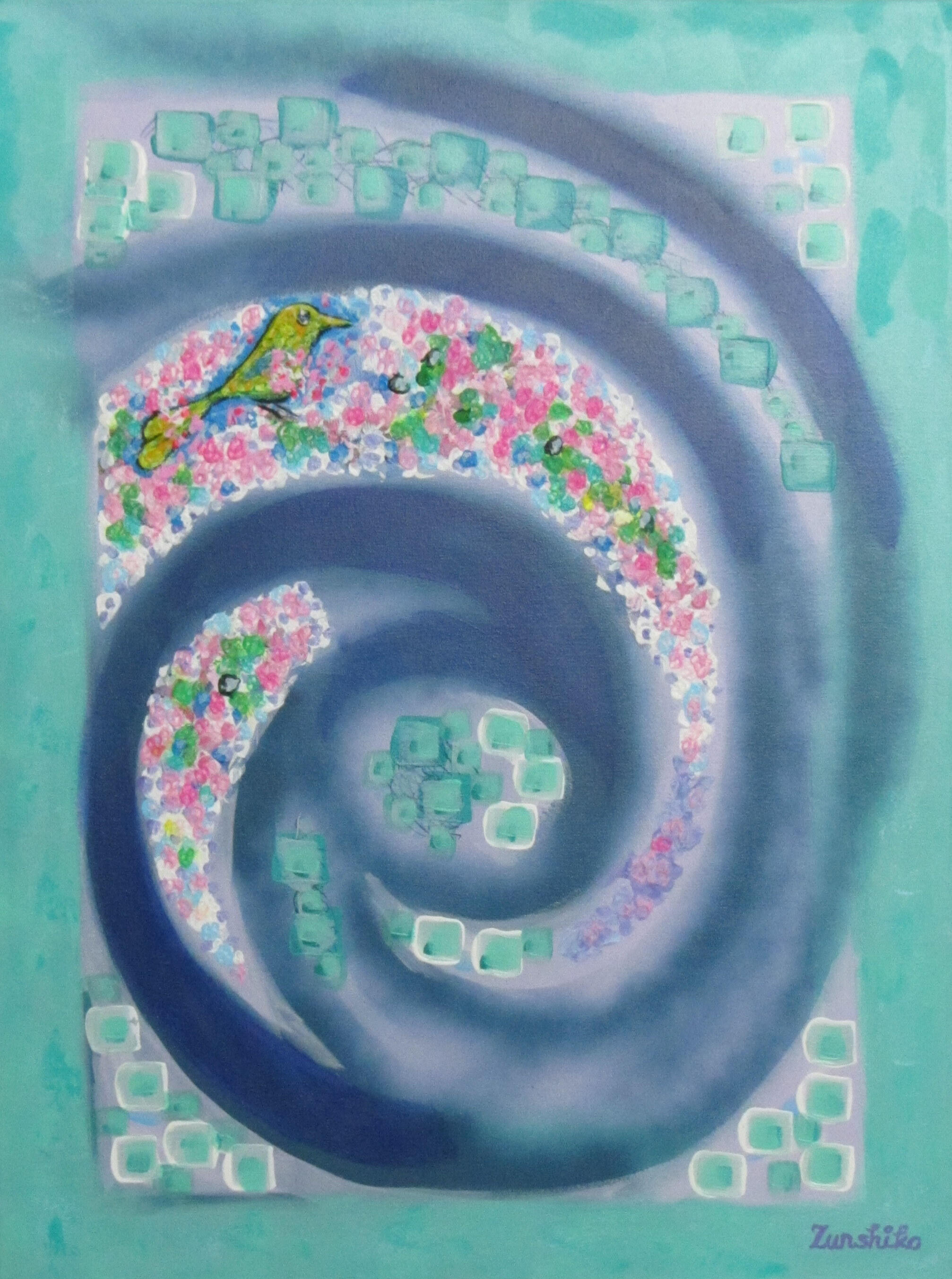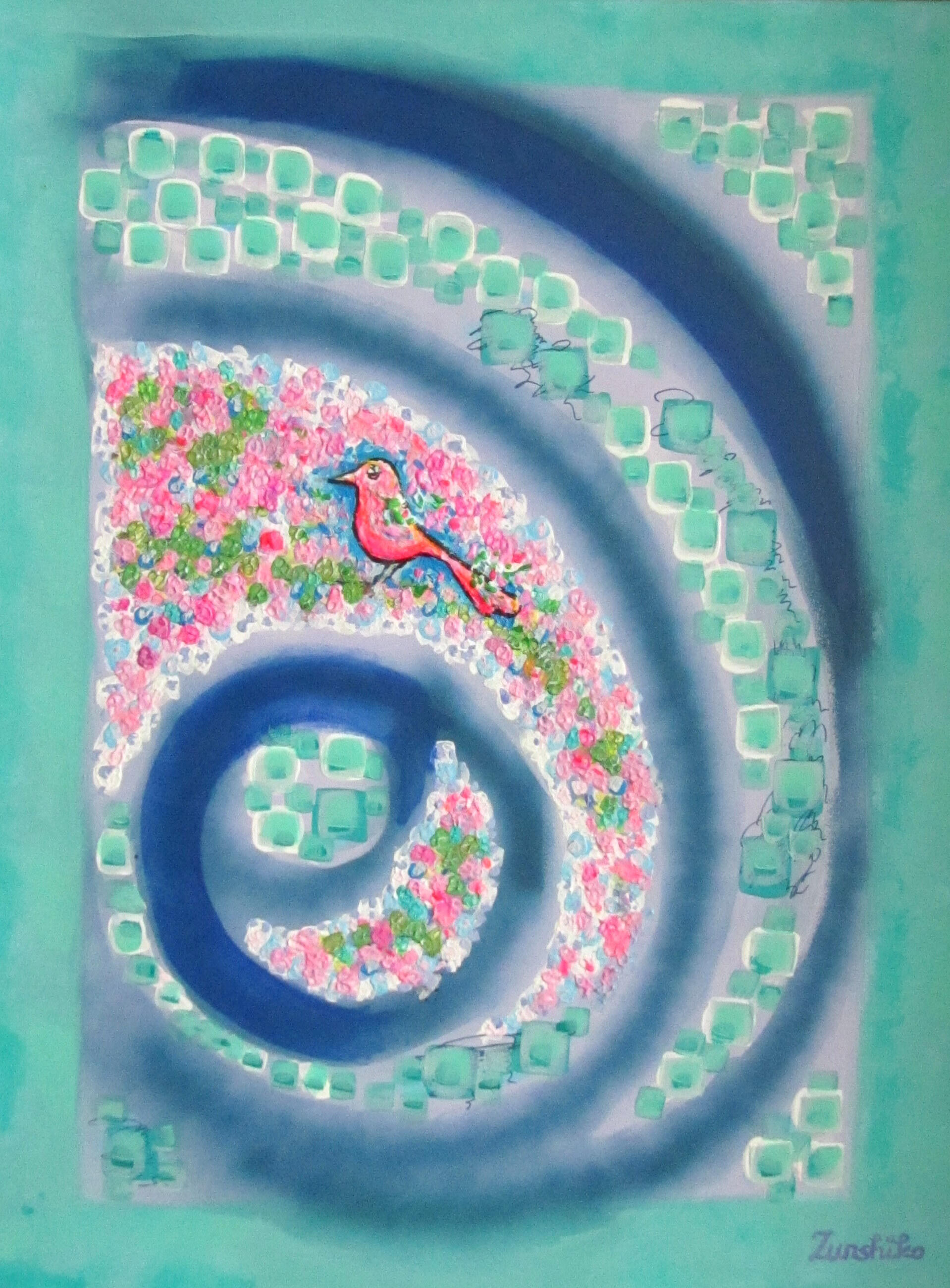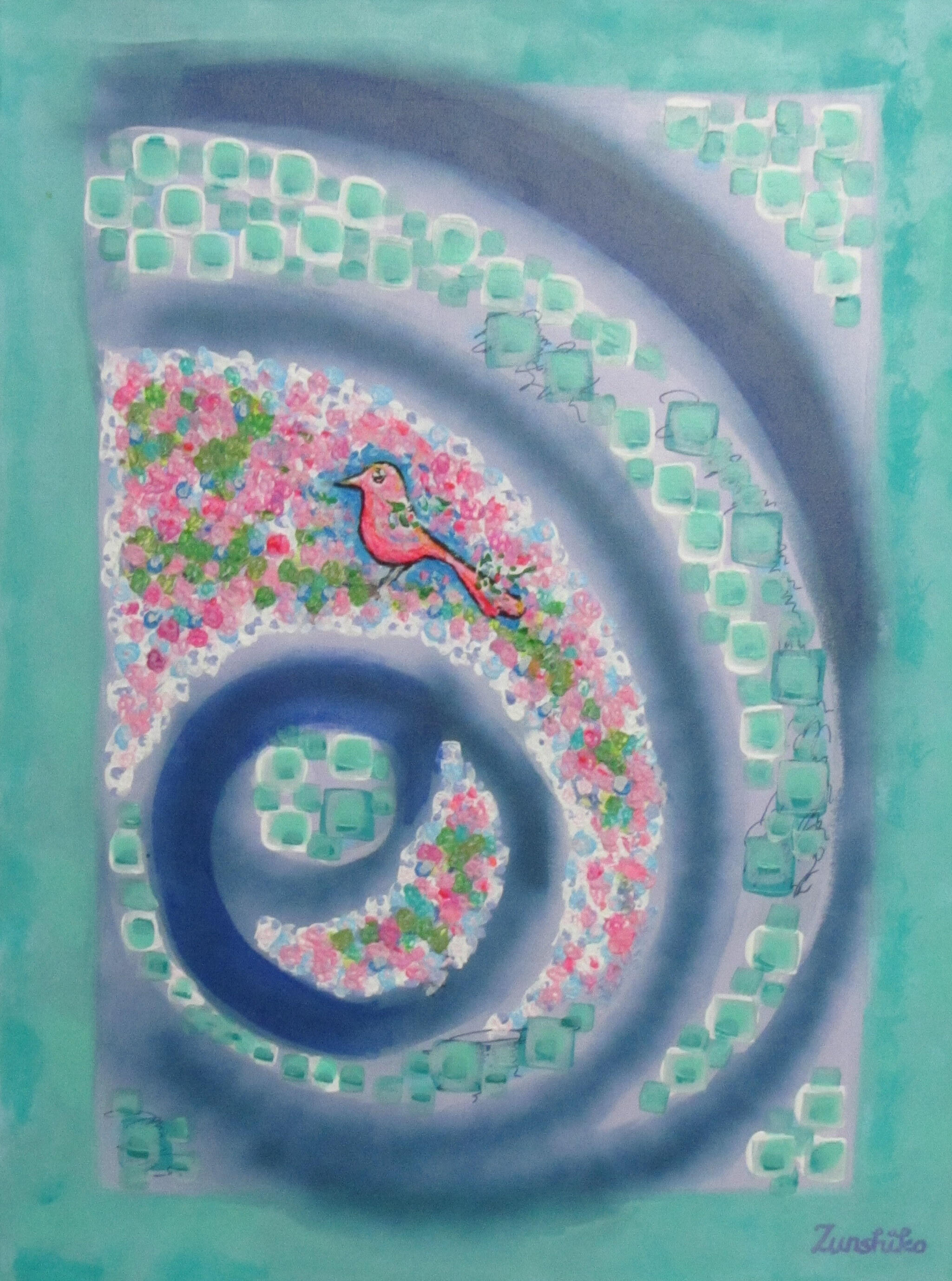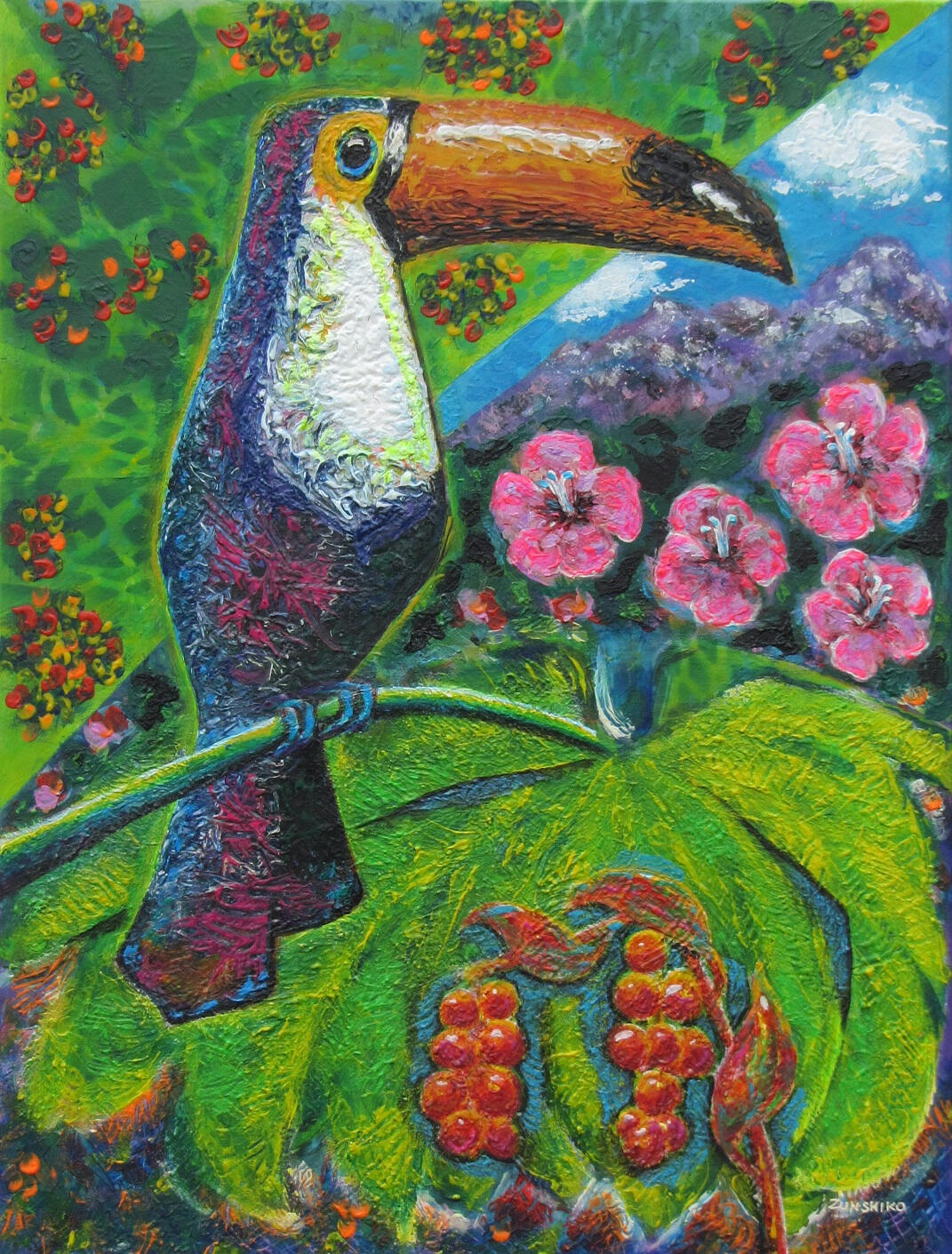 Her artist nickname, “Zunshiko,” is coming from her love of Japan and Japanese style. The name including “sunshine” as well.Paintings of Zunshiko (from 2025 and one from 2004):Toucan Paradise 60 x 80 cm