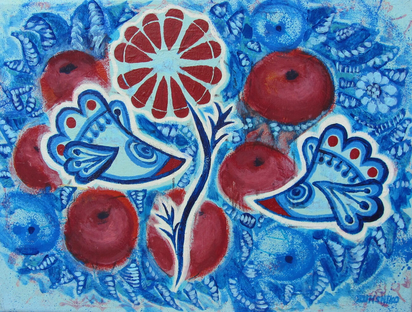 (acrylic painting on wood fibre board, framed)Blue Birds – seriesBlue Birds 30x40cm