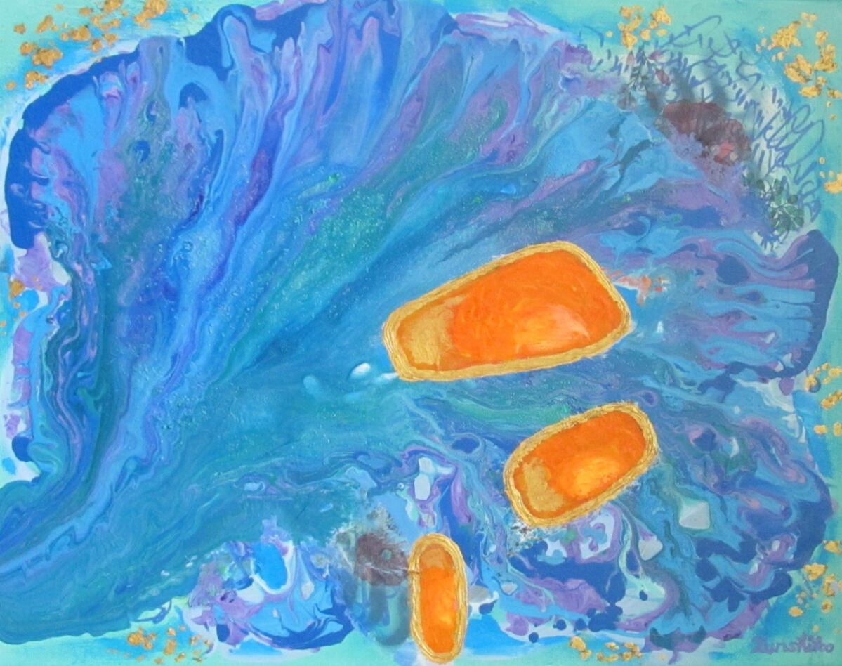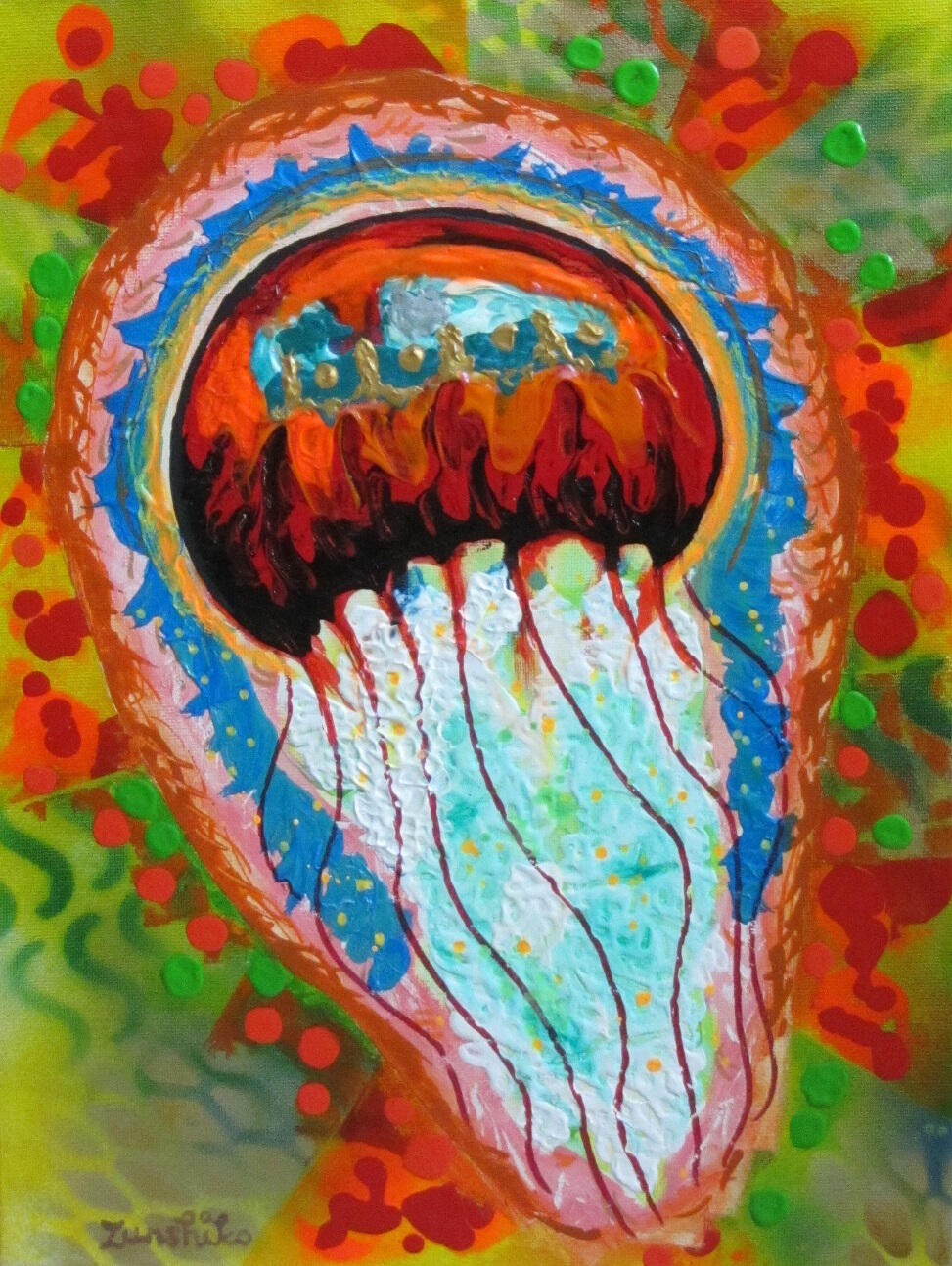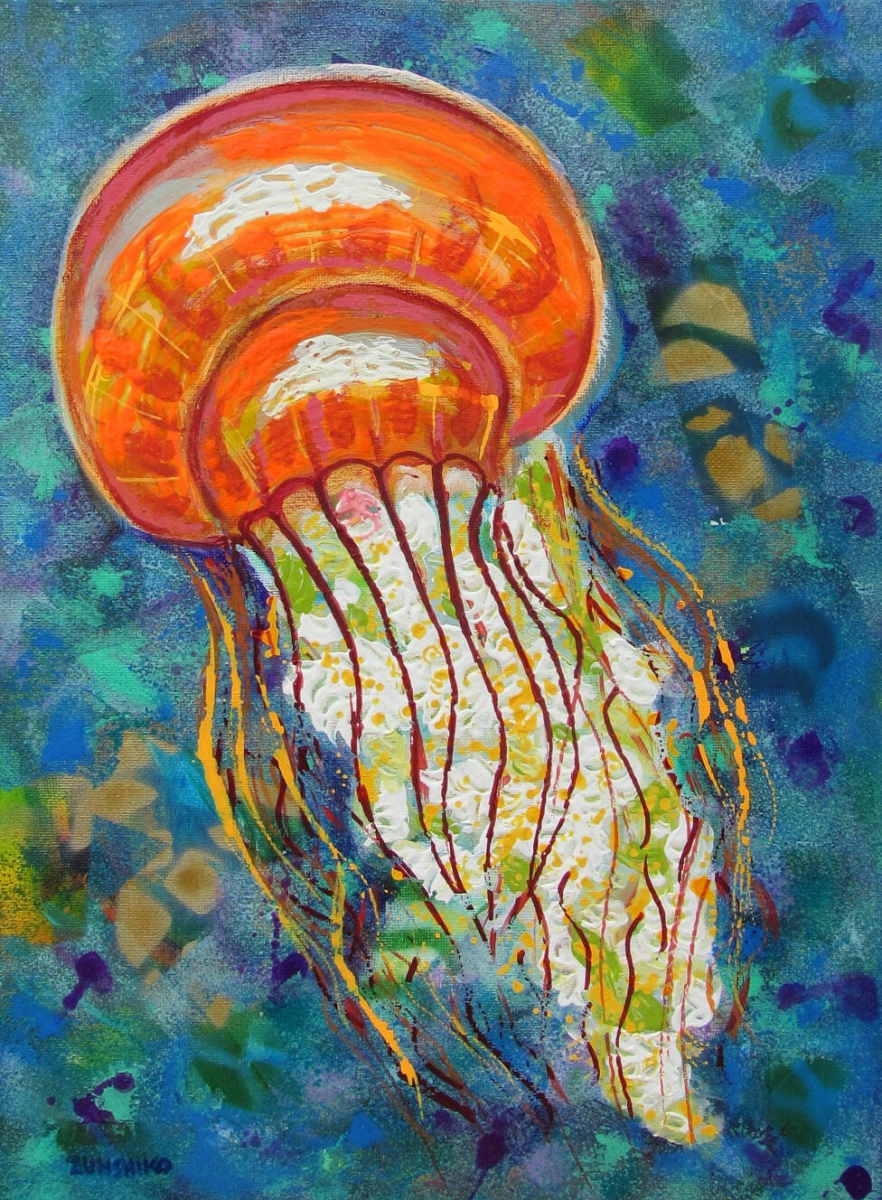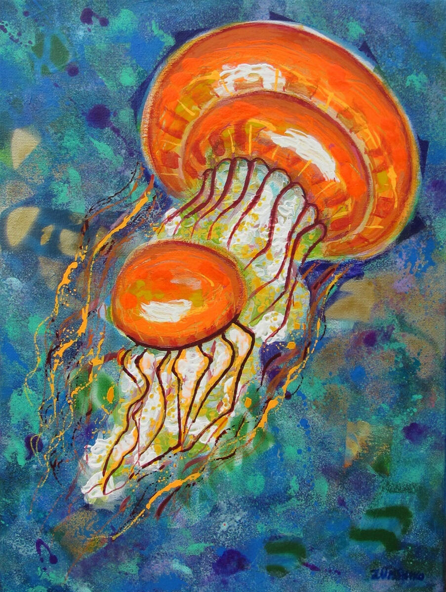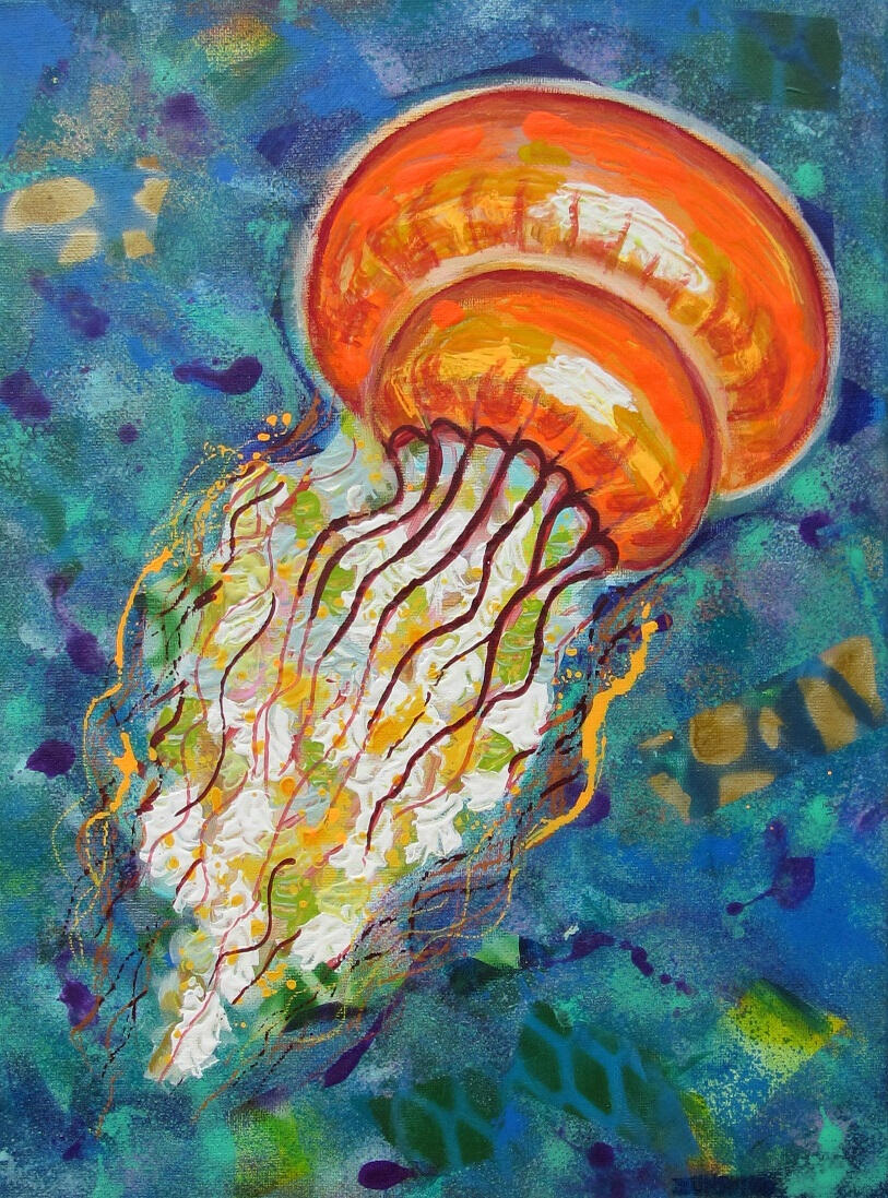 (acrylic painting on canvas)Jellyfish – seriesJellyfish – Orange 30 x 40 cm