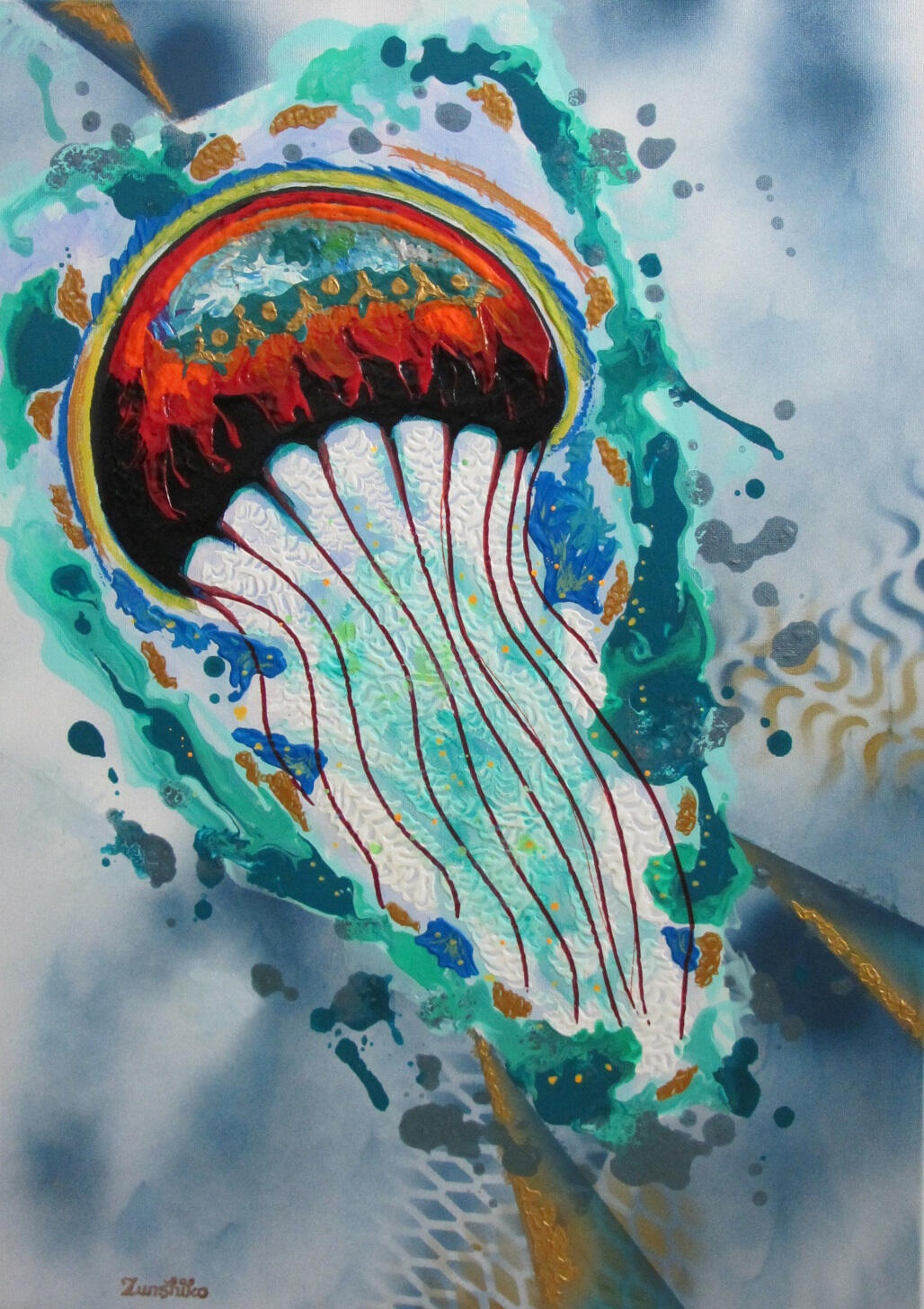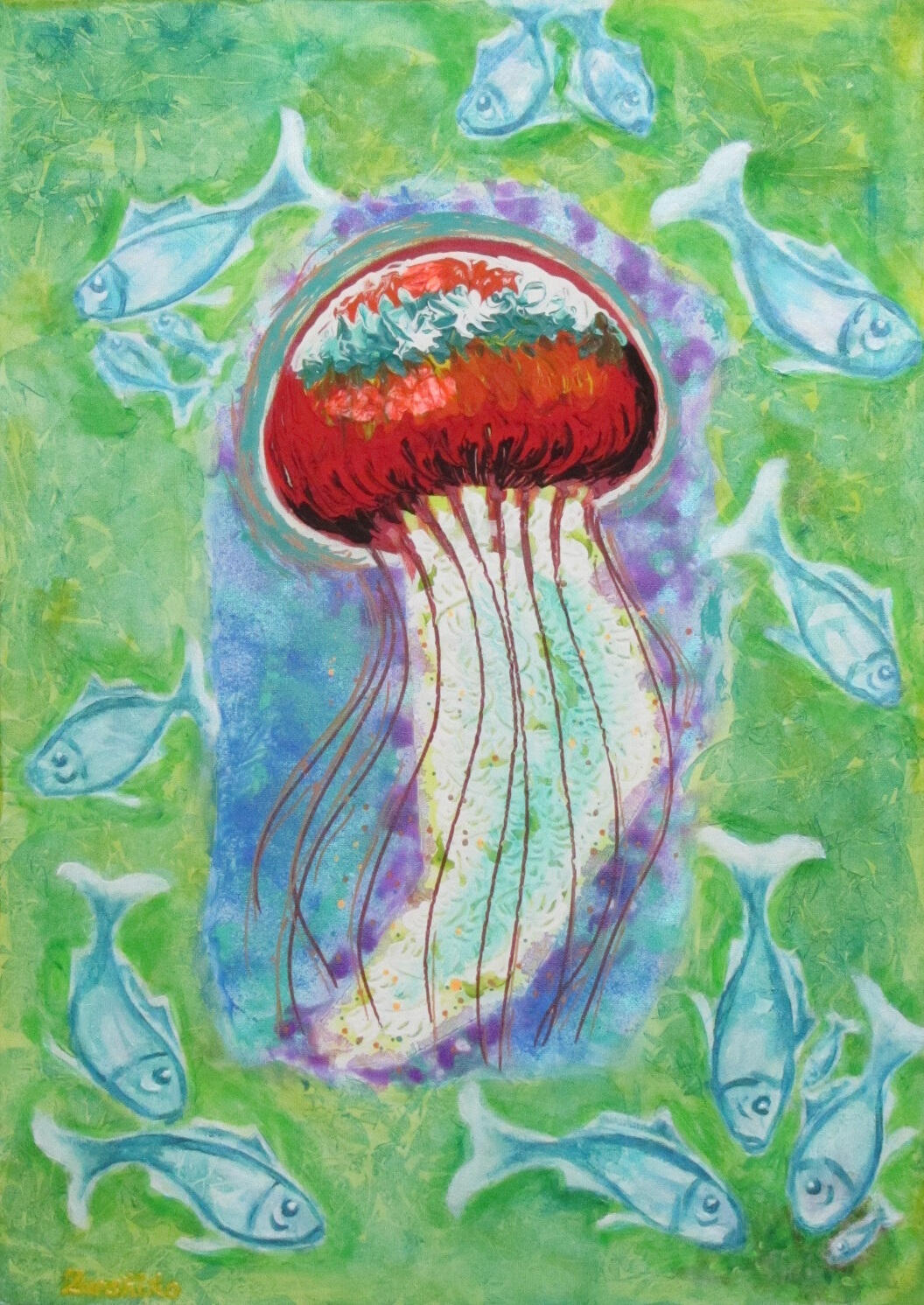 (acrylic painting on canvas)Dance with the Stars– seriesDancing Jellyfish 50 x 70 cm