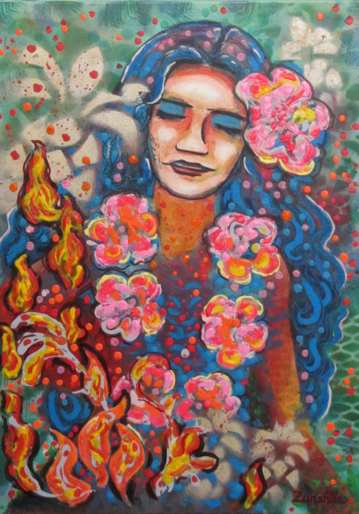 (abstract acrylic painting with mixed media, on canvas)Lahaina – Rise from the Ashes! – seriesDance of Hawaii 30 x 40 cm